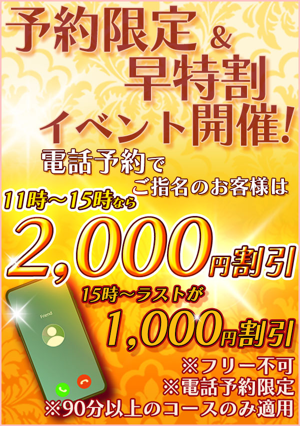 電話予約、ネット予約、LINE予約からセラピストをご指名されるお客様限定!